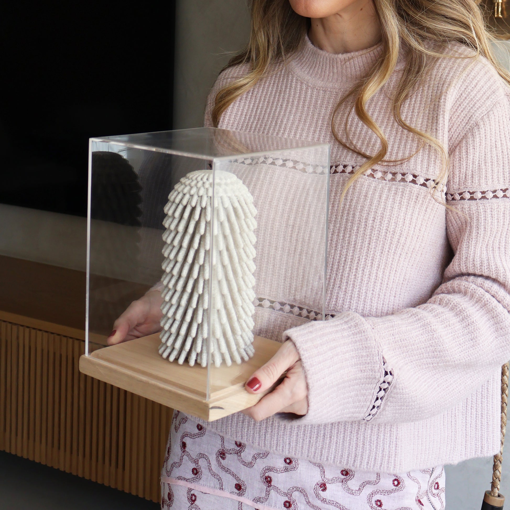 Para conservar a durabilidade das peças, não deixe exposta ao sol ou calor excessivo. A limpeza dos acrílicos deve ser feita apenas com uma flanela úmida, sem produtos químicos.