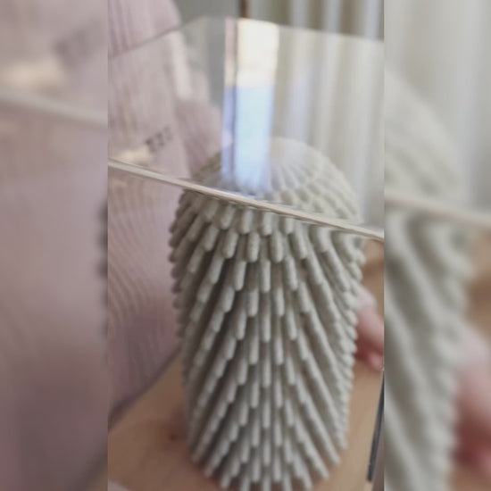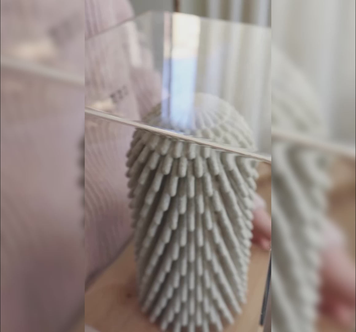 Peças desenvolvidas com impressão 3D, feitas de amido de milho, 100% renovável. Dimensões : 25x18x18 cm
